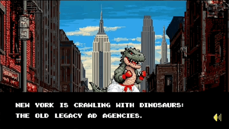 When StrawberryFrog wanted to show that independent agencies can move faster than their bigger competitors, we skipped the manifesto and built a video game instead. Outleap is a fully playable retro arcade fighter game built entirely with AI tools, where a scrappy frog battles a world of lumbering dinosaurs.